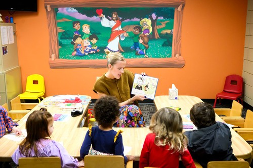 "Children’s Worship is designed for kids ages 3 through 1st grade who are learning what it means to worship God and how meaningful it can be in their lives. Our leaders share age-appropriate Bible stories using puppets, visual aids, black-light stories, and digital clips to help children understand and engage. Our hope is that, by the time they reach 2nd grade, they’ll be excited to join their families in worship—carrying with them a strong foundation and a love for gathering to worship each week."